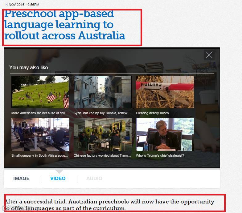 澳洲全国范围内,大约10000多名学前班学生将参与到这个项目中,从明年开始,密集地学习包括中文在内的第二外语。