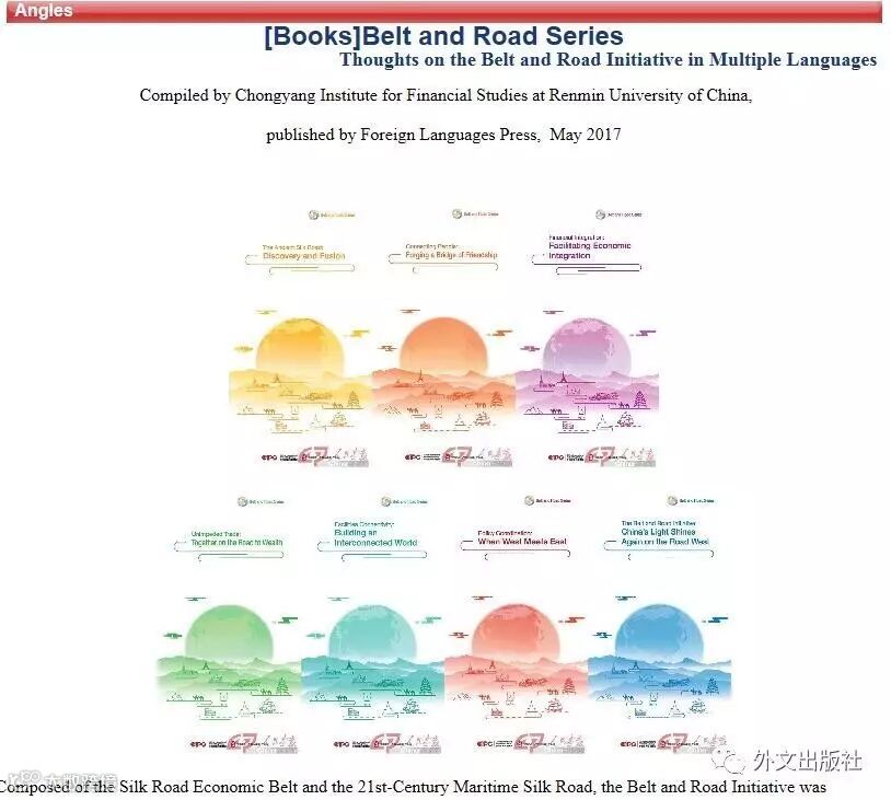 针对“一带一路”峰会和沿线国家,本系列外宣品以中、英、法、俄、阿拉伯、韩文6个文种同步推出,并将于近期举办相关发布及研讨活动。
