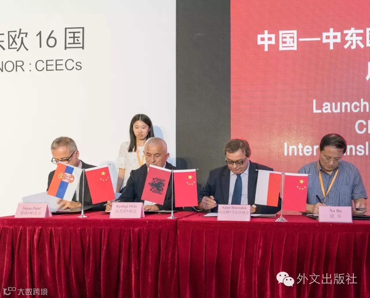 启动仪式上,中国外文出版社社长、总编辑徐步,波兰阿达姆•马尔沙维克出版集团创始人阿达姆•马尔沙维克,阿尔巴尼亚FAN NOLI出版社社长Rexhep Hida,塞尔维亚拉古那出版社社长德扬•帕皮克等分别代表本国出版机构完成了签约。