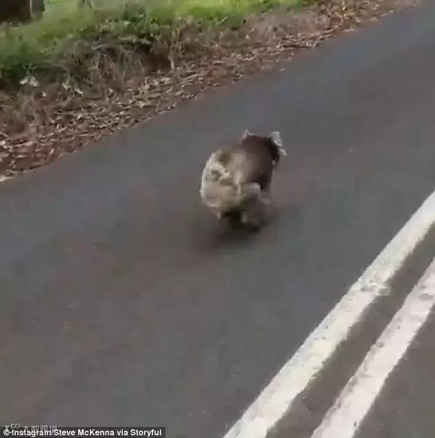 这只考拉估计嫌走路太慢,走着走着居然跑了起来。
