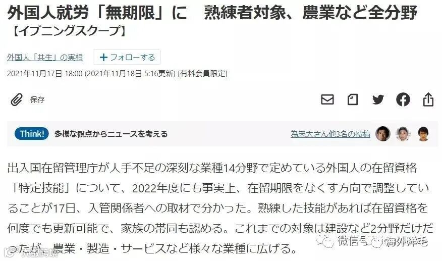 这意味着日本人手严重不足的14个行业“特定技术工人”,在留期限将在事实上被取消,对于一个长期对移民关闭的国家来说,这是一个重大转变。