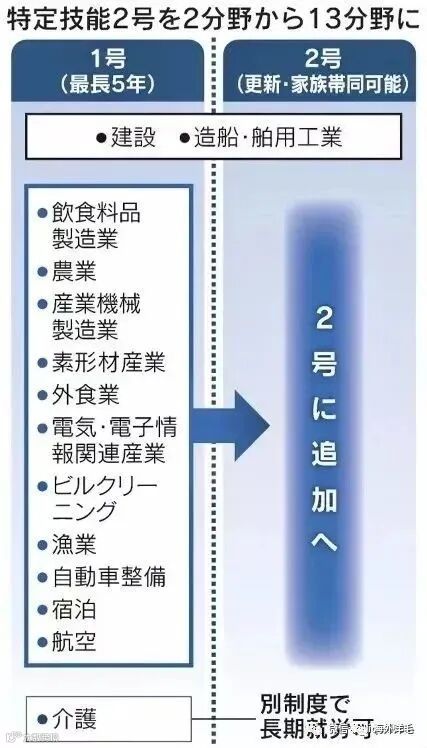 如果这项政策开始实行,这些蓝领——也就是来自中国、越南,将被允许无限期续签签证,并允许携带家属。此前日本的“2号”在留资格仅针对“建筑”、“造船·船舶工业”两个领域,以后将扩大到农业、制造、服务等13个行业。此外,“护理”行业,也可通过其他制度实现长期就业。