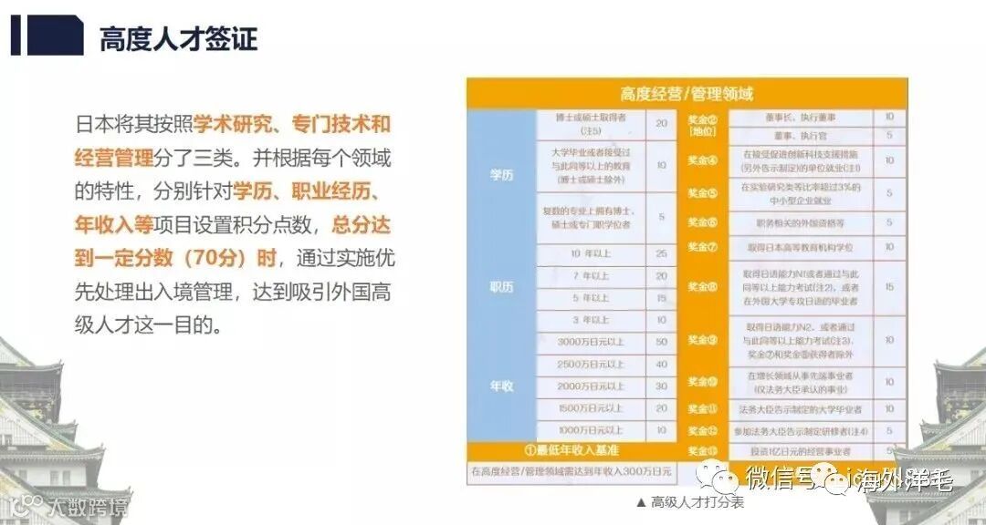 如果已经结婚了,毕业了,工作了,就不太适合用这3种方式了,我们可以通过经营管理签证和高度人才签证达成目标。