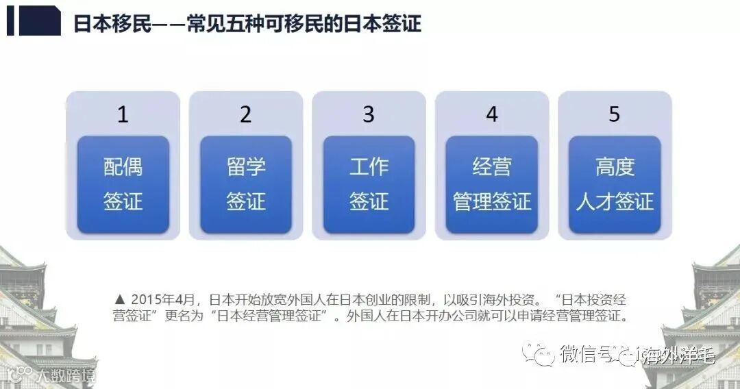 目前来说,除了通过去日本打工,还有多种办法可以移民日本,适合不同需求和不同条件的朋友。今天给大家介绍五种可移民的签证,大家可以大致了解自己最适合哪一种,具体移民方式介绍可点击文章查看:身份配置第1期:日本已经成为移民大国,普通人如何移民日本?