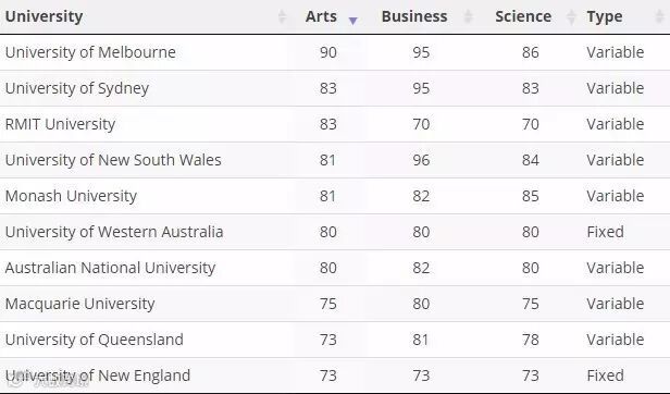 在ATAR分数线的要求中,墨大的要求是最高的: