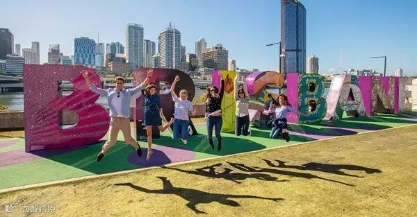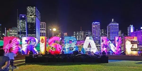 来南岸公园公园附近的布里斯班新地标——由不同颜色组成的字母雕塑BRISBANE,这是2014年G20峰会留下的纪念物。
