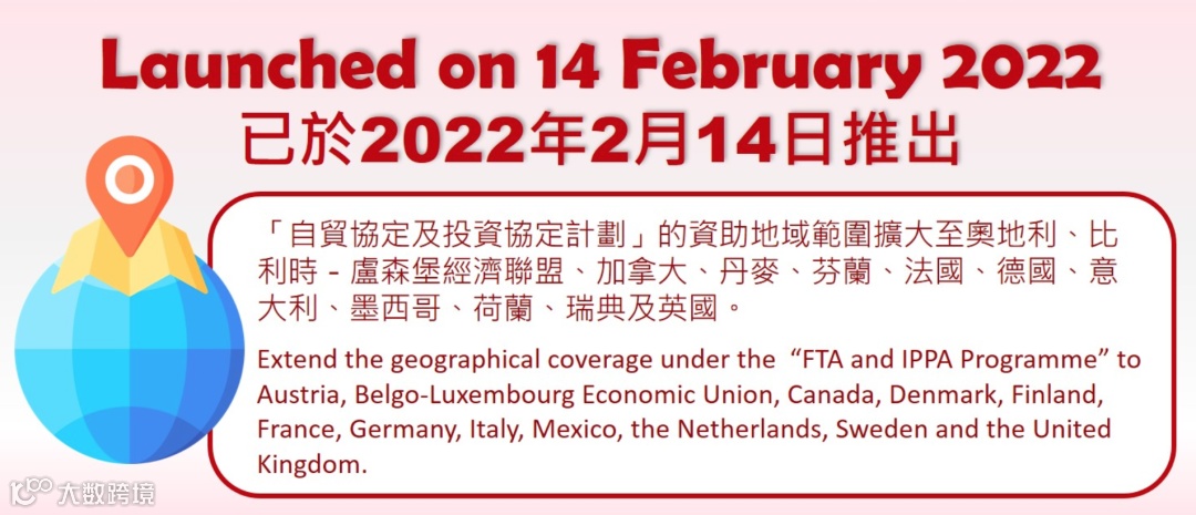 为支持企业发展更多样化的市场及把握「十四. 五」规划的机遇,政府于2021年7月起分阶段推出新一轮优化措施,包括扩大资助地域范围至涵盖所有与香港签署促进和保护投资协定(「投资协定」)的经济体及增加每家企业的累计资助上限至600万元。