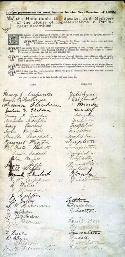 以法律的形式赋予了新西兰妇女投票选举的权利