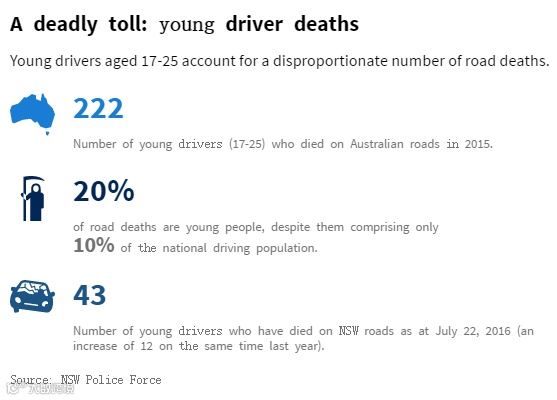 据悉,新州的P牌持有人绝大多数是年轻人,而这类人群在道路交通事故中的死亡率比其他年龄段人群要高出一倍。去年共有233名持有P牌的年轻人死于车祸,而这其中,男性的死亡概率又高出女性一倍。