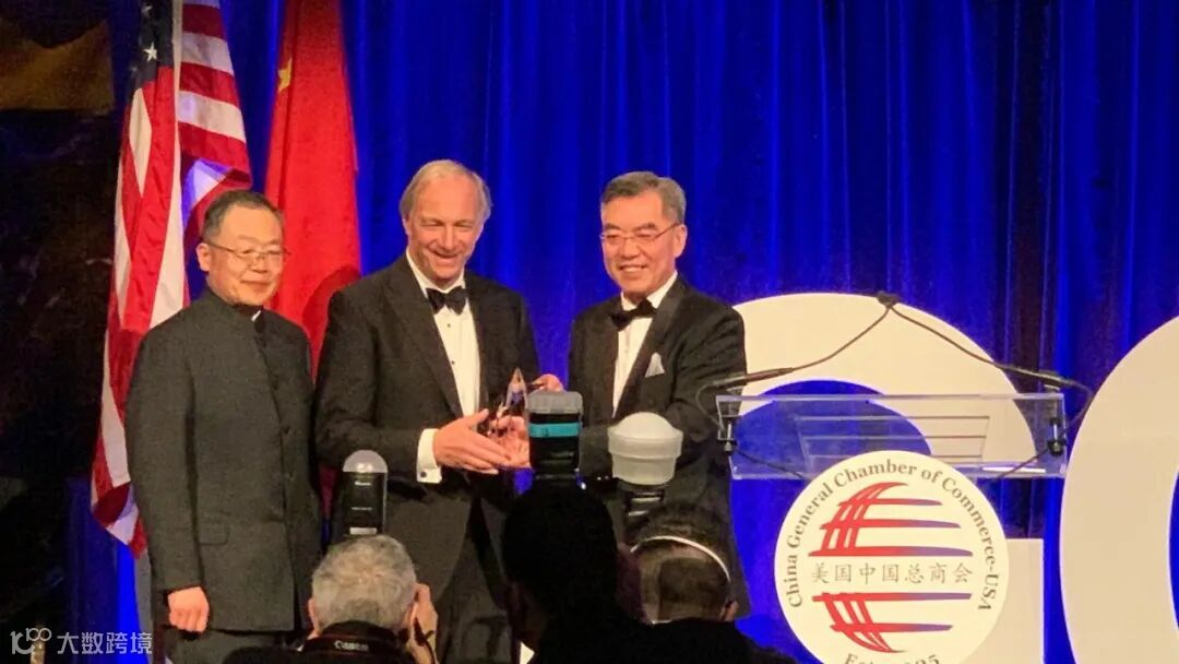 ▲2022年2月22日,美国中国总商会(CGCC)在纽约举行2022农历虎年颁奖晚宴,中国驻纽约总领事黄屏(右)向达利欧颁发原则奖并致辞指出,达利欧富有远见地从历史角度看待中国的发展,35年来,一直通过管理和咨询项目访问中国并研究中国市场,为增进中美人民了解做出了突出贡献