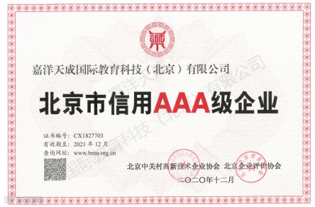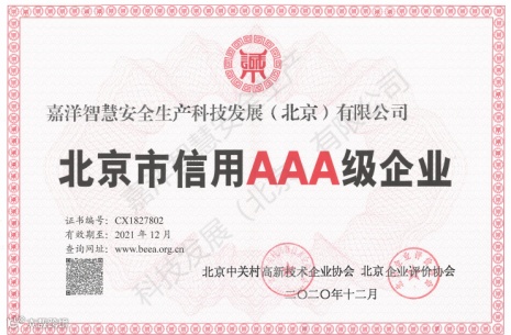 近日,嘉洋科技凭借较强的综合实力和良好的企业信用,顺利通过北京市信用AAA级企业年审,再次荣获“北京市信用AAA级企业”这一荣誉资质。