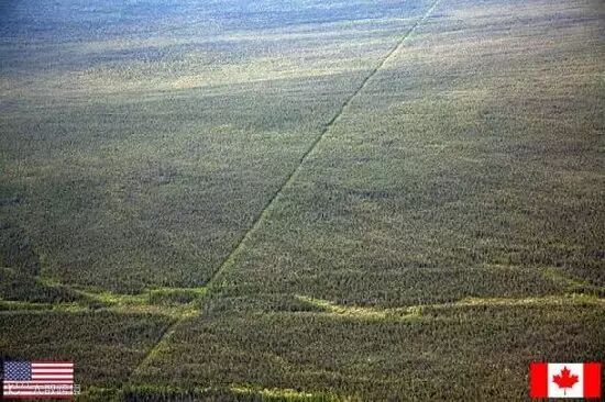 13、美国和加拿大的国境线,感觉就是空出了一行没种树。