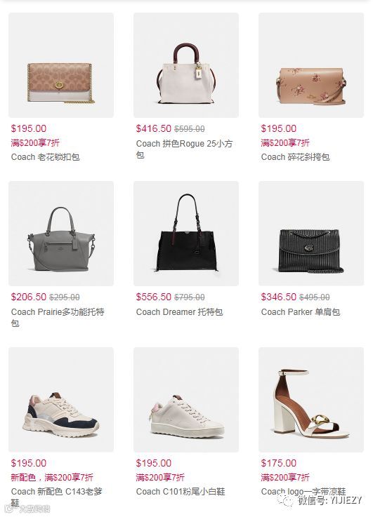 COACH部分款式满$200即可使用代码:MOON30,享受七折优惠,重点是很少参与折扣的C家当家花旦山茶花系列也部分款式也参与本次活动!一姐本人超喜欢山茶花系列,春暖花开的季节,海风微微吹过脸庞,背着山茶花系列轧马路~清新脱俗的美腻~