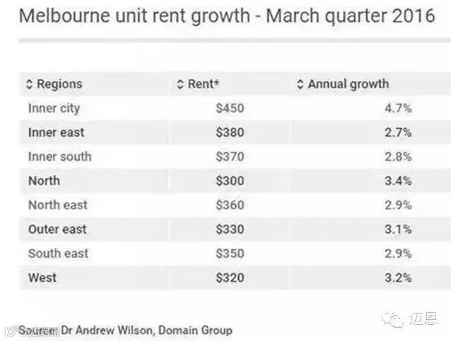 Domain Group最新的季度租金报告显示,墨尔本单元房(Unit)的周租中位价首次突破了380澳元,而独栋别墅(House)的周租中位价更是一直稳定在400澳元以上。