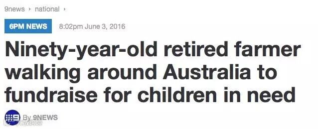 根据九号新闻台报道,这位名叫Peter Tripovich的老人是二战的退役老兵,曾在澳洲皇家空军(Royal Australian Air Force)服役,退役后生活在维州小镇Echuca上,为了给国际儿童保护中心澳洲分部(International Children’s Care Australia, ICC)筹集善款,他开始了徒步环澳旅行!