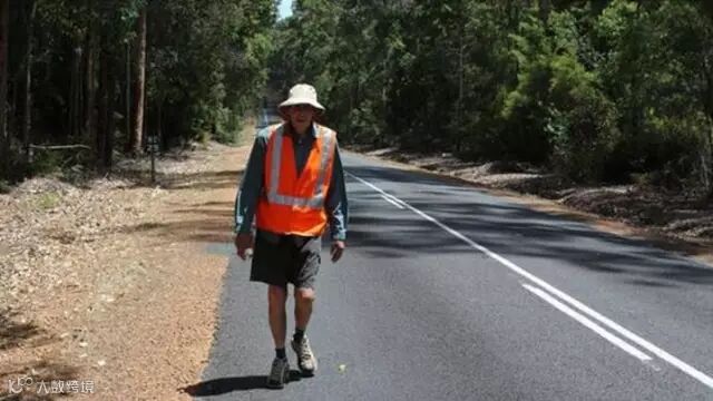 Tripovich每天凌晨3-4点就会出发,乘天没亮走几个小时,每天完成40-50公里,Nullarbor平原非常难走,沿途住宿之间的距离也非常远,有一次火车从他身边呼啸而过,年迈的他还摔了一个跟头。