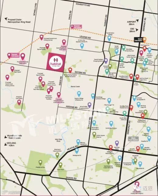 · 距离墨尔本CBD31公里 (45分钟车程,西部快线开通后将大大缩短车程);