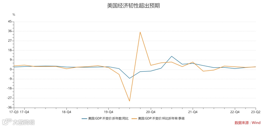 尽管美国的信用评级被下调,但是市场已经担忧了1年多的衰退始终没有出现,美国经济似乎进入到“衰退尚未兑现,复苏言之尚早”的“薛定谔状态”。未来一段时间内,美国经济的走势取决于三个变量的“合力”: