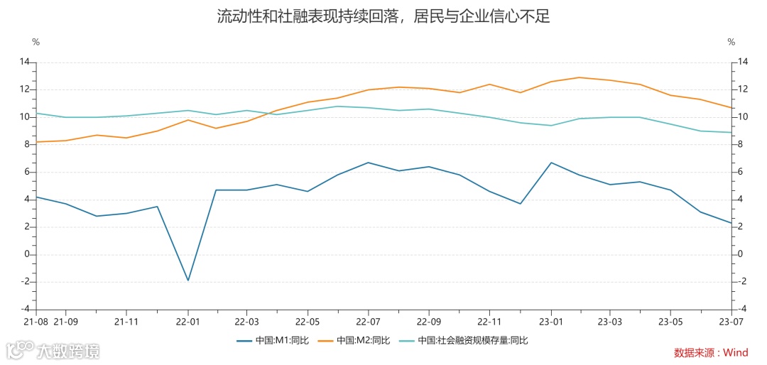 对信贷来说,因为银行为了完成季末考核指标,每年4、7、10月往往是全年信贷最低的三个月份,投放量通常少且到期规模高;不过主要经济部门的融资需求的确仍偏弱,从地产销售和出口数据来看,地产和外需制造链状况尚未出现好转。