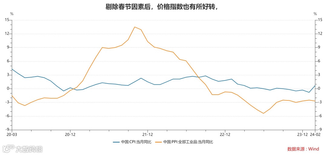 2月CPI环比1.0%,同比为0.7%,环比涨幅与过去几年相比大致相当,而同比则大幅高于去年的-0.8%,如果剔除春节带来的影响,1-2月的均值比去年同期上升,通缩威胁正在逐渐消退。