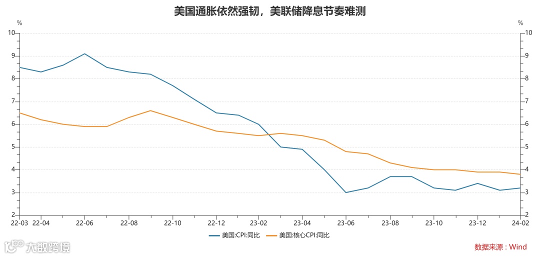 美国的通胀压力还比较大,2月CPI同比为3.2%,较1月上行0.1个百分点,小幅上行的主要贡献来自能源价格的回升。市场预期美联储大概率降息时点仍维持在6月,不过预期的年内降息次数由上周的4次下降至3次,全年降息幅度为75BP。