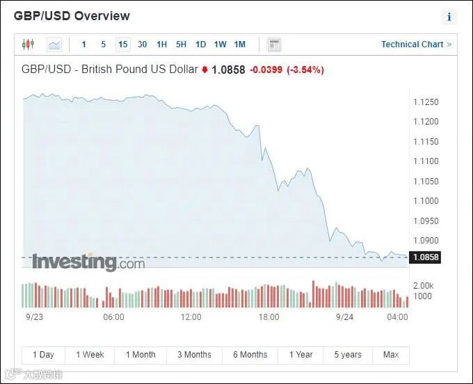 不过,也许是她太急于在上任后做出令人信服的政绩,赢得更多的民意支持,从而做了一项错误的决策。9月23日,英国政府推出自1972年以来最大规模的同时也是最为激进的减税政策组合,希望借助强有力的积极财政政策以提振本国不断衰退且长期低迷的经济状况。此次出台的减税举措涉及公司税、个人所得税以及财产税等,总金额达到450亿元。然而事与愿违,一系列减税政策组合非但未能起到刺激经济企稳回升的效果,反而在英国金融市场引发“地震”。