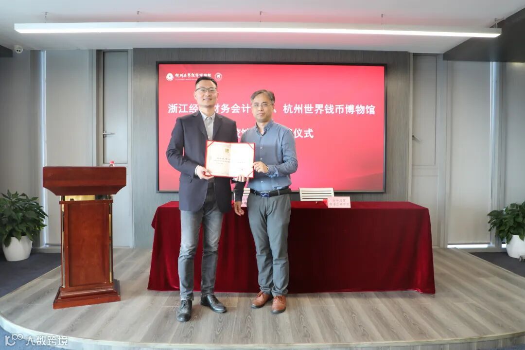 今年的“两会”工作报告中,教育仍然是国民关注的热点,政府始终推动促进教育公平和质量提升。为积极响应号召,有机地将专业理论与社会实践结合起来,近日,中侨数字科技研究院兄弟单位——杭州世界钱币博物馆,与浙江经贸财务会计学院举行校企签约仪式,双方共建的“金融文化实践基地”正式挂牌,再一次打造校企合作”新桥梁“。
