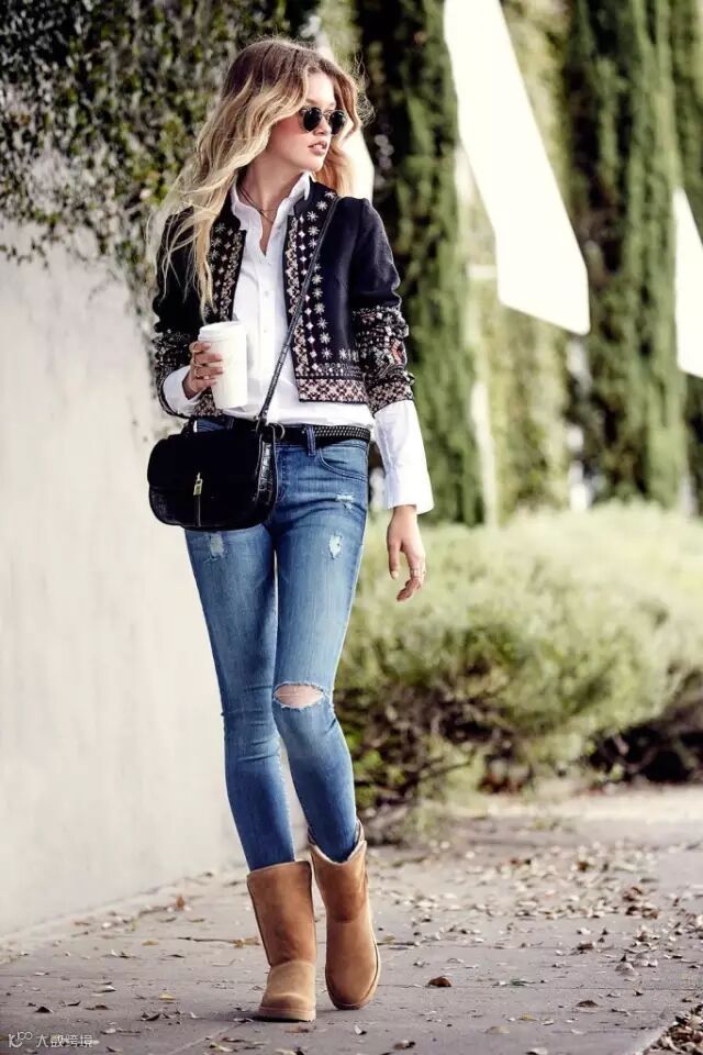 对于喜欢穿得随性的女孩,UGG太适合你了~只需要打开衣柜,找出一件自己喜欢的宽松上衣,简简单单就能搭配得宜~