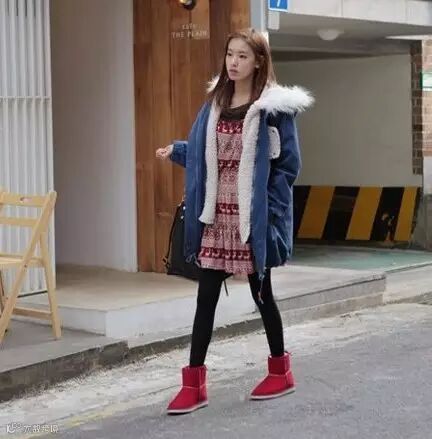 谁说雪地靴一定要配裤子,拿出你飘逸的连衣裙或可爱的小短裙,搭配毛茸茸的雪地靴,既足够的保暖,又不失俏皮~