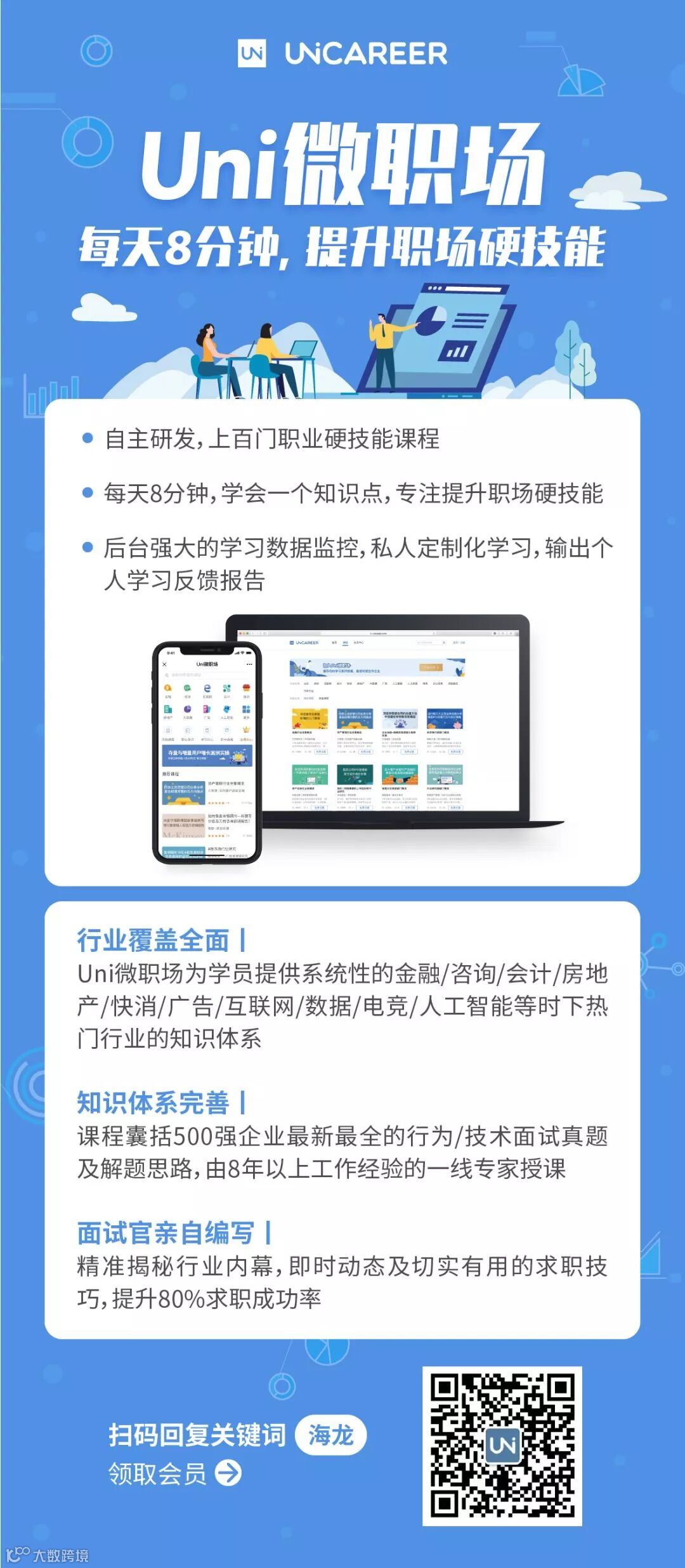 “好的开头就是成功的一半”,科学的职场规划,助你年后求职横扫千军万马。规划第一步,海龙联合在线职业教育平台UniCareer为你“打辅助”,职场技能,行业知识等众多硬货打包带走,送出的超值惊喜在线cue你!(在文末直接领取求职福利哦)
