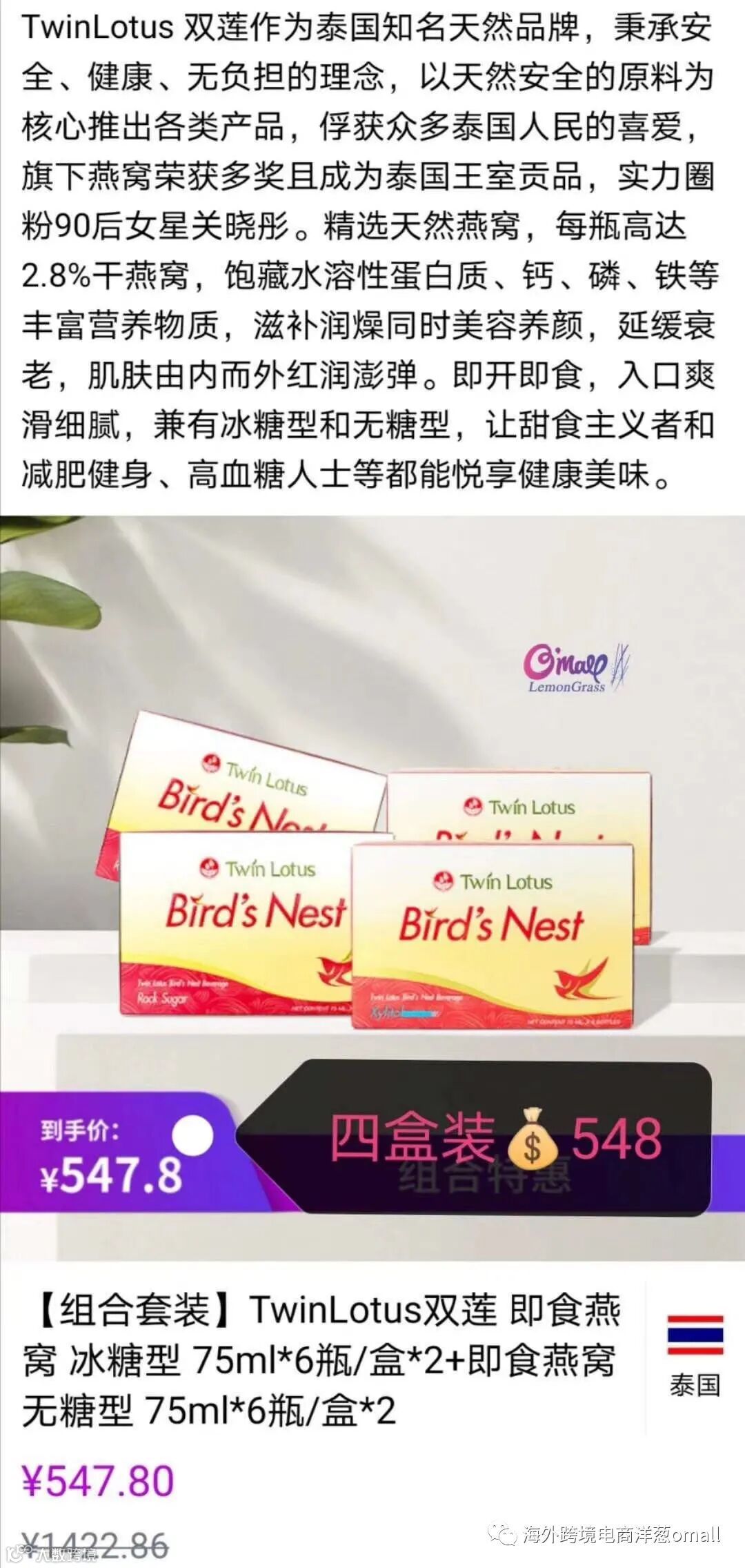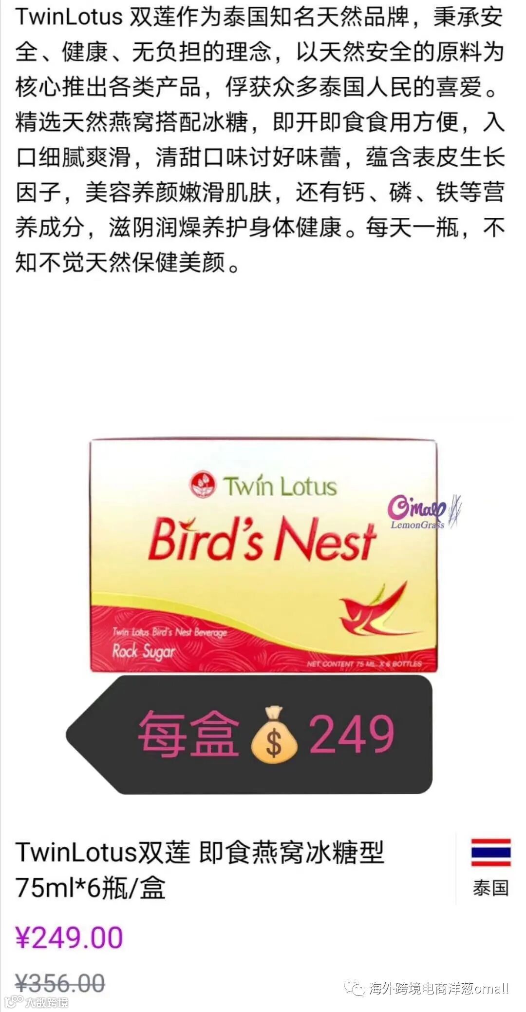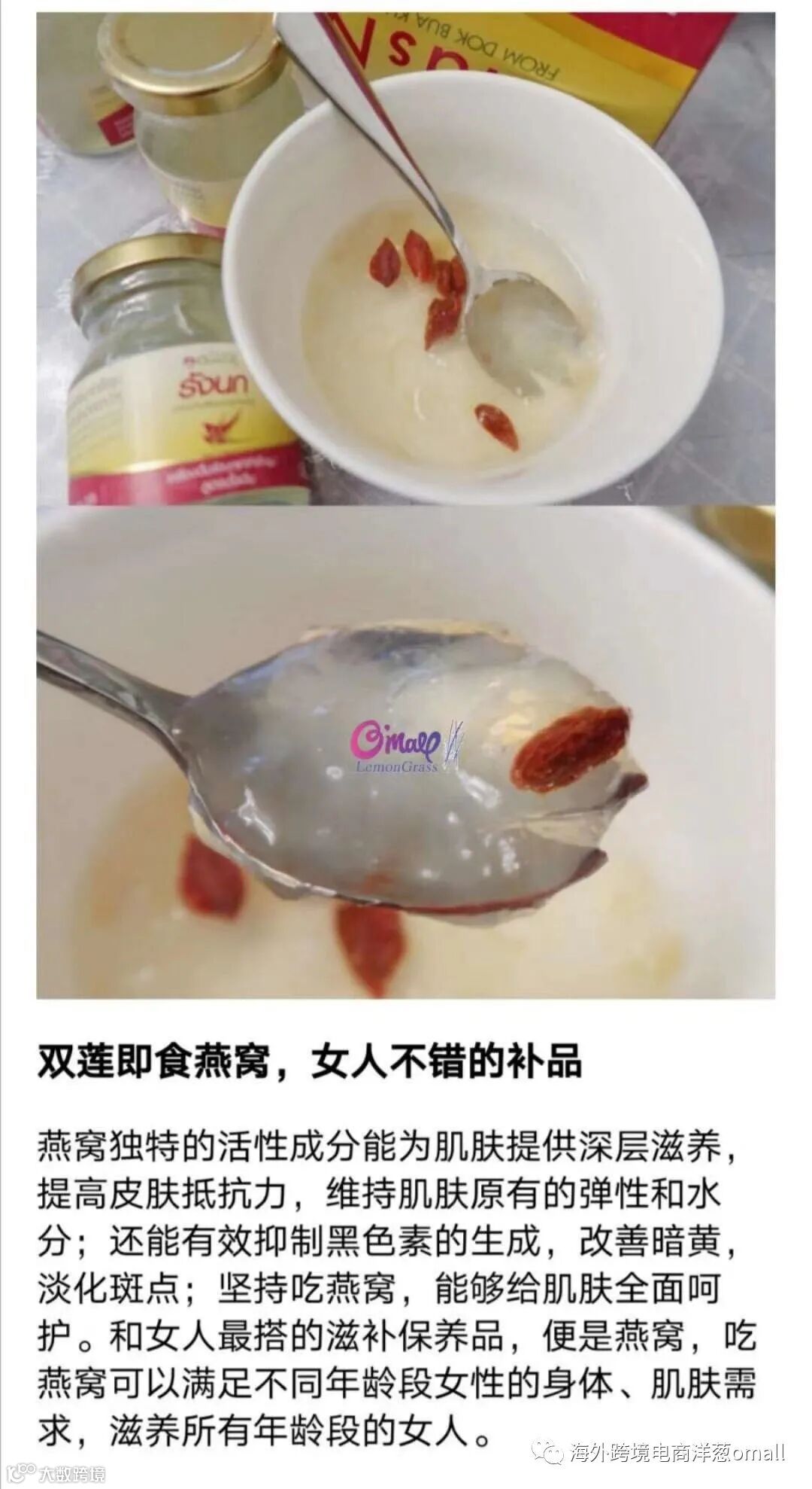 TwinLotus 双莲作为泰国知名天然品牌,秉承安全、健康、无负担的理念,以天然安全的原料为核心推出各类产品,俘获众多泰国人民的喜爱,旗下燕窝荣获多奖且成为泰国王室贡品,实力圈粉90后女星关晓彤。精选天然燕窝,每瓶高达2.8%干燕窝,饱藏水溶性蛋白质、钙、