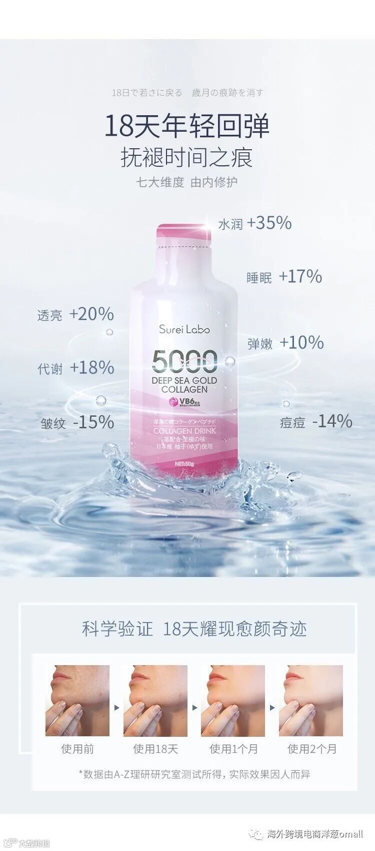 黑眼圈、眼袋、脱发、指甲脆弱……明明是20+的年纪,肌龄比实际年龄老了好几岁,说明胶原蛋白正在逐渐流失。Surei Labo胶原蛋白,甄选5000mg海洋性低分子肽,加上贵妇级美白成分L-半胱氨酸,辅助配合天然乳酸菌和抗氧化酵母、维他命B6和有机柚子维C,18天奇迹唤醒18岁少女肌