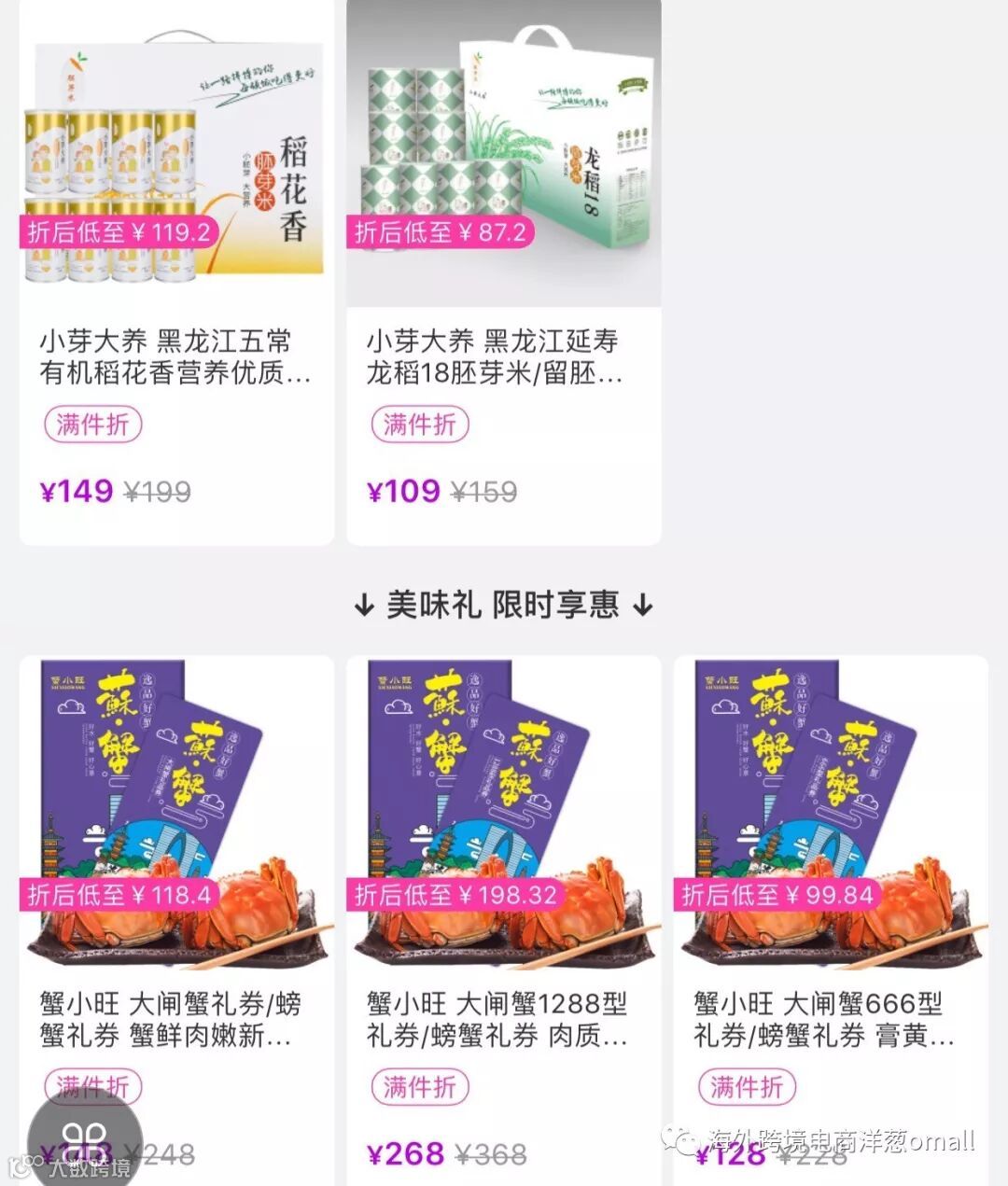 海外跨境电商洋葱omall金秋将至,除了要与最美的人分享金桂飘香、月色迷人的夜晚,更要与TA分享你满满的心意。精心准备的颜值好礼,让心仪的她越发动人美丽;精挑细选的健康佳礼,让牵挂的他活力充沛;紧跟潮流的时尚大礼,送的都是TA所想......8月25日12:30-9月16日18:00,指定专区购蟹券,买满5件即赠送1张666型礼券;买满15件即赠送1张666型礼券+1张1288型礼券;买满35件即赠送1张666型礼券+1张1288型礼券+1张2188型礼券,赠完即止!