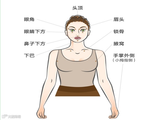 用食指或者中指敲击眼晴的内侧、外侧和眼睛下方的区域;然后敲击嘴唇上、鼻子下面,也就是我们常说的人中;往下走依次敲击嘴唇正下方;胸骨、锁骨与第一根肋骨的接合处;腋窝下方;手掌外侧小拇指到手腕之间;最后是头顶。每个部位十次,重复三遍。