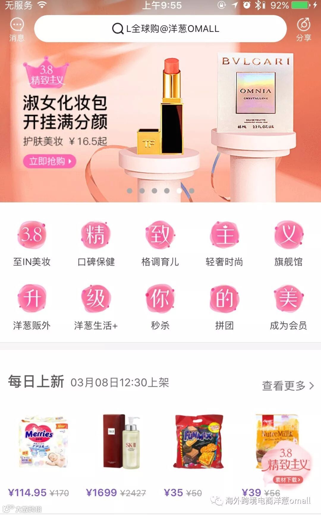 三八女王节大型活动开始了,在这特殊的日子里,洋葱omall全球供应链再次为您以及您的家人准备了精致美妆、格调育儿、洋葱贩外、口碑保健等生活用品,机会难得每年一次女王节洋葱omall,都会奉上全球最好的本土产品,来满足女王们及家人们的各种不同的需求,只要您满意就是对我们的最大支持。洋葱omall每周热榜