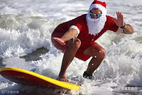 反差大到,需要一些心理承受,你以为圣诞老人就活在童话世界,看惯了裹着红棉袄驾着雪橇的场景,再看土澳,也许你看到了是穿着吊带背心衬衫短裤,划着浪板向你奔来的圣诞老人,你绝对会大吃一惊