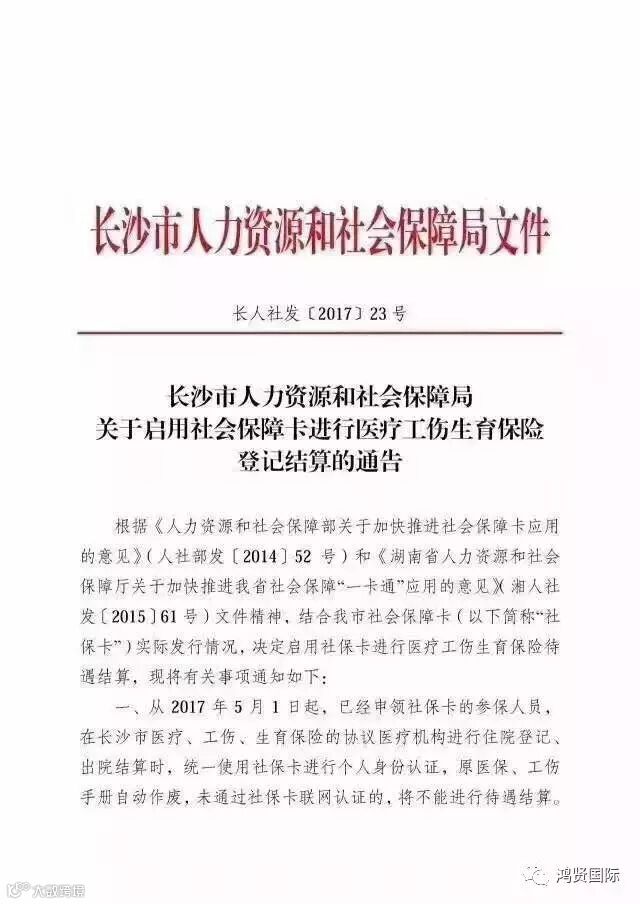 长沙人力资源和社会保障局关于启用社会保障卡进行医疗生育工伤保险登记结算通报