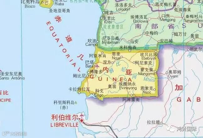 赤道几内亚(西班牙语:República de Guinea Ecuatorial),位于非洲中西部,西临大西洋,北邻喀麦隆,东、南与加蓬接壤。由大陆上的木尼河地区和几内亚湾内的比奥科、安诺本、科里斯科等岛屿组成。