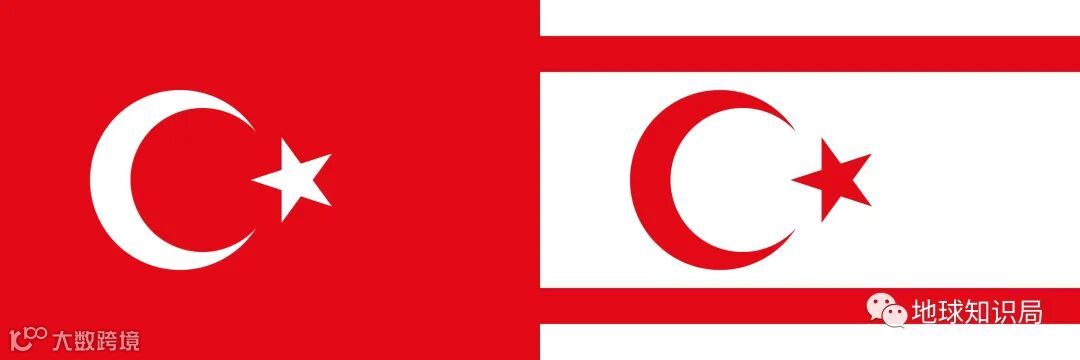 (左:土耳其,右:“北塞浦路斯土耳其共和国”)▼