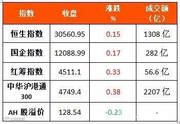 恒指早盘高开0.47%,盘中震荡回落,截止收盘,恒生指数涨0.15%,报30560点;盘中高见30724点,再创10年新高。国企指数涨0.17%,报12088点;红筹指数涨0.33%,报4511点;大市交投保持活跃,全天成交额1308亿,维持千亿上方。板块方面,涨幅前三的为生物科技、铝、航空服务,分别上涨19.11%、5.01%、4.68%,跌幅前三的为楼宇建造、医疗及医美、出版,分别下跌2.60%、2.00%、1.15%。.