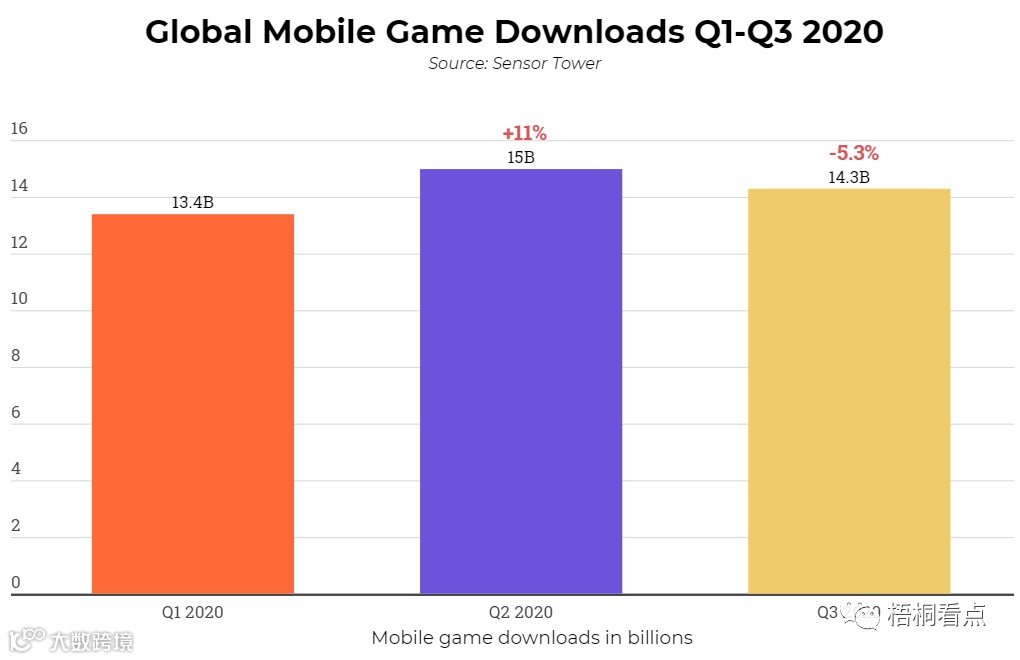 在全球范围内,2020年第一季度至第三季度的下载量同比增长36.9%,从2019年同期的312亿增长至427亿。值得注意的是,2018/19年度的同比增长仅约为7.7%。