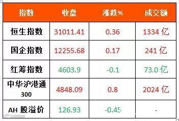 香港恒生指数盘中突破31000点,再创十年新高。腾讯控股突破441港元,再创历史新高。截止收盘,恒指上涨0.36%,报31011.41点,腾讯控股报443.80港元,上涨1.19%。
