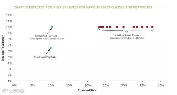 ▼图2:传统组合与杠杆化后分散组合的风险收益对比