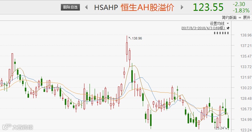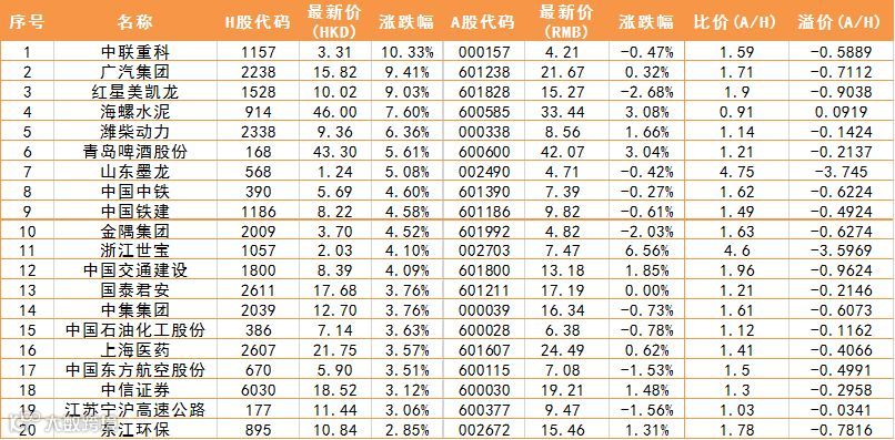导读:AH溢价指数走势AH股当日走势排行前20名