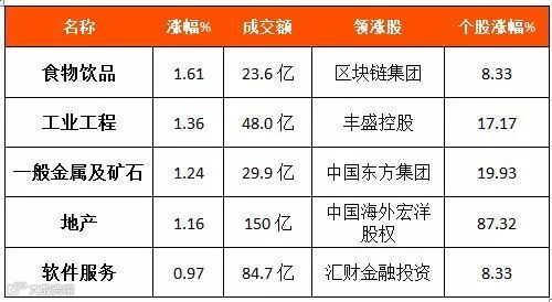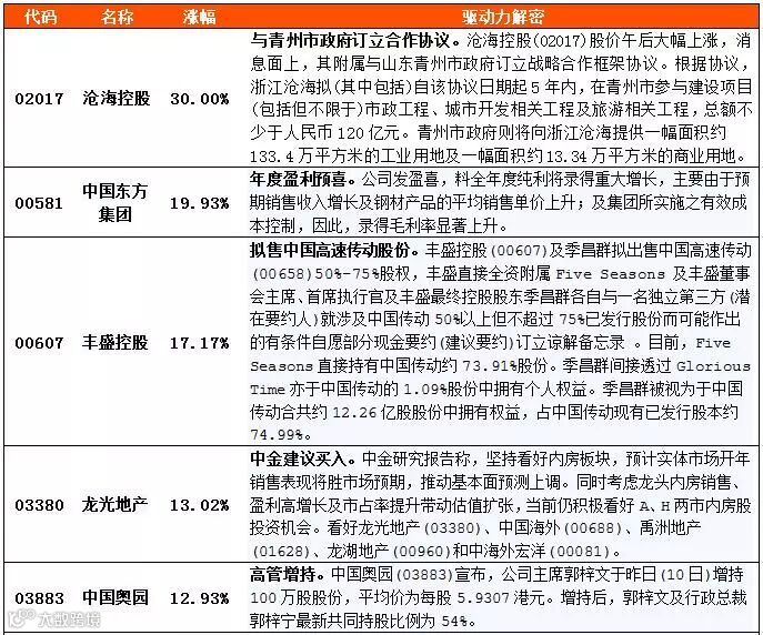 内房股上涨。中国奥园涨12.93%,报6.64元,盘中创新高;合景泰富涨8.81%,报12.6元;融创中国涨4.95%,报35元。