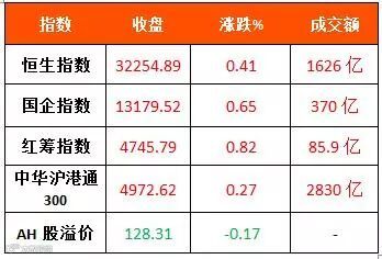 恒生指数高开0.06%,之后迅速跳水一度跌近0.4%,但是内房股的强势带动下恒指迅速回升,在32140点上下震荡。截至收盘,恒生指数涨0.41%,报32254.89点,连续4日创历史新高;国企指数涨0.65%,报13179.52点;红筹指数涨0.82%,报4745.79点。大市成交1625.84亿港元。