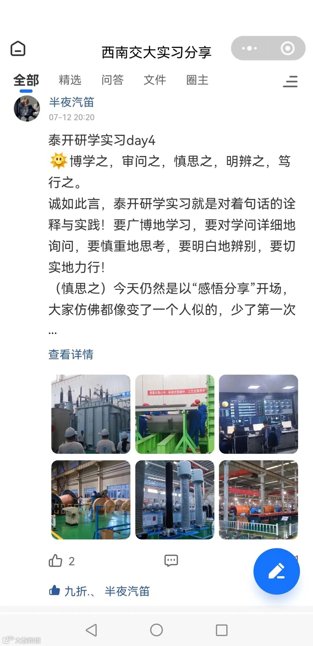 王老师表示,泰开就像泰山一样雄厚沉稳,从产品研发投入、培训老师的实力、车间的自动化程度等等,都十分令人震撼。本次研学活动对同学们来说也是一次难能可贵的经历,相信会对大家的学习和工作有很大的帮助。