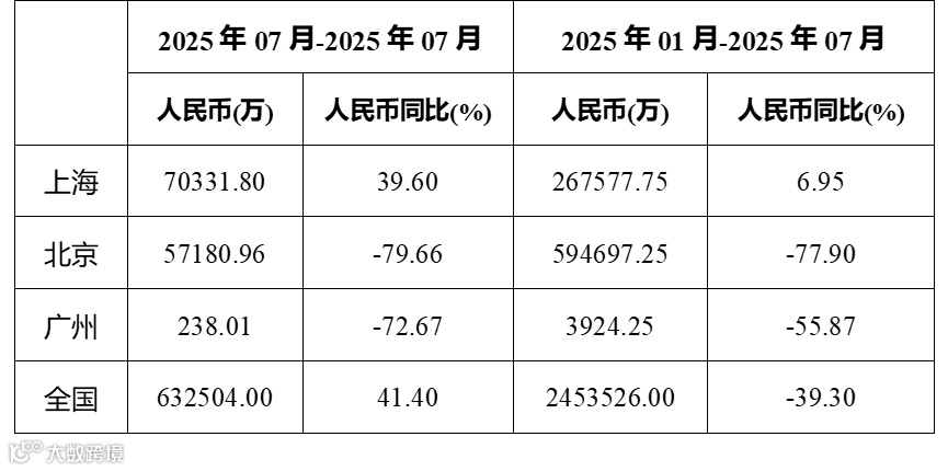 与此同时,2025年7月,上海市医药材及药品贸易进口总值97.78亿元,较去年同期下降13.13%,占全国当月进口总值的29.70%,低于北京。前7个月上海市医药材及药品贸易进口总值累计662.19亿元,较去年同期下降6.79 %,占全国累计进口总值的32.62%,略高于北京。