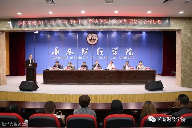 2017年9月12日,长春财经学院金恒学院2017-2018学年开班仪式暨法学院与金恒集团合作签约仪式,在学校图书馆报告厅举行。