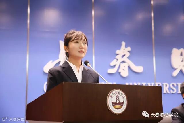 会计1435班学生韩影代表金恒学院全体同学发表感言。她感谢长春财经学院和金恒学院提供这么好的平台,使得她们能够快速成长,代表全体同学承诺会以长财精神,火焰般的热忱对待工作,并充分发挥自己的特长,以优异的成绩来回报金恒、回报学校、回报社会。